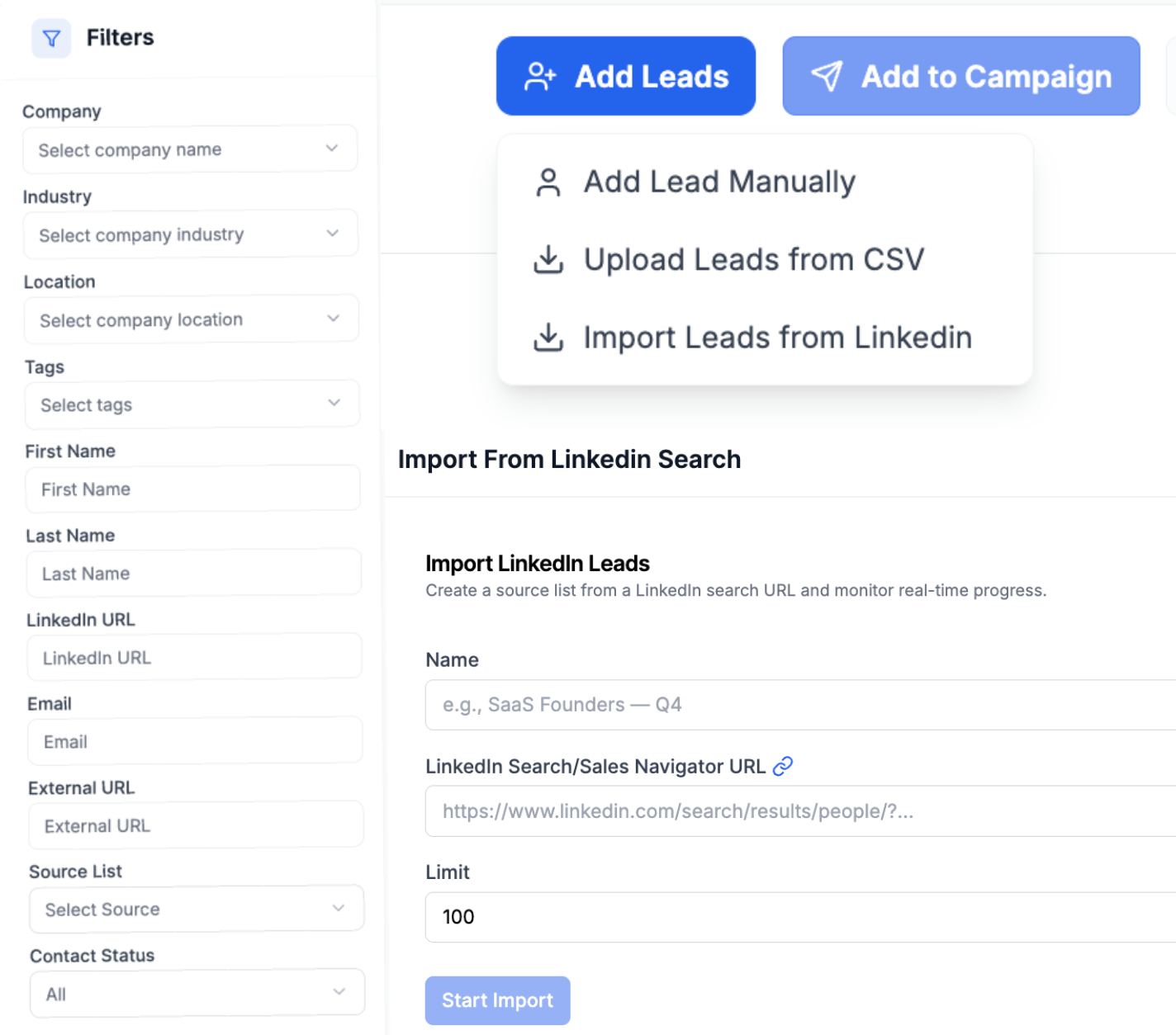 After you’ve generated your leads, LeadSync AI allows you to add them directly to your campaigns. It automates LinkedIn connection requests, email outreach, and follow-ups, ensuring personalized and consistent communication at scale without manual intervention.